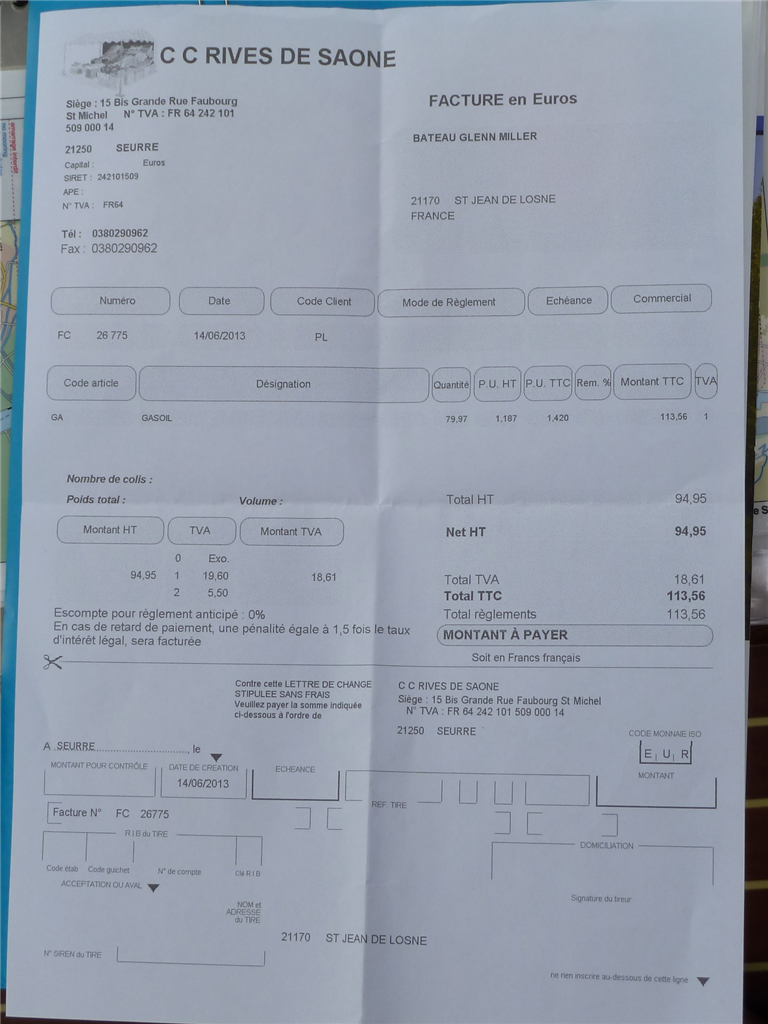 Unsere Tankrechnung von Saint Jean.