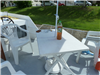 Zwei Polster auf dem Sonnendach schützen vor der Sonne.