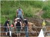 Die Bauarbeiter in Auxonne versuchen einen Baumstrunk zu entfernen. Was für ein herziges Bootli!