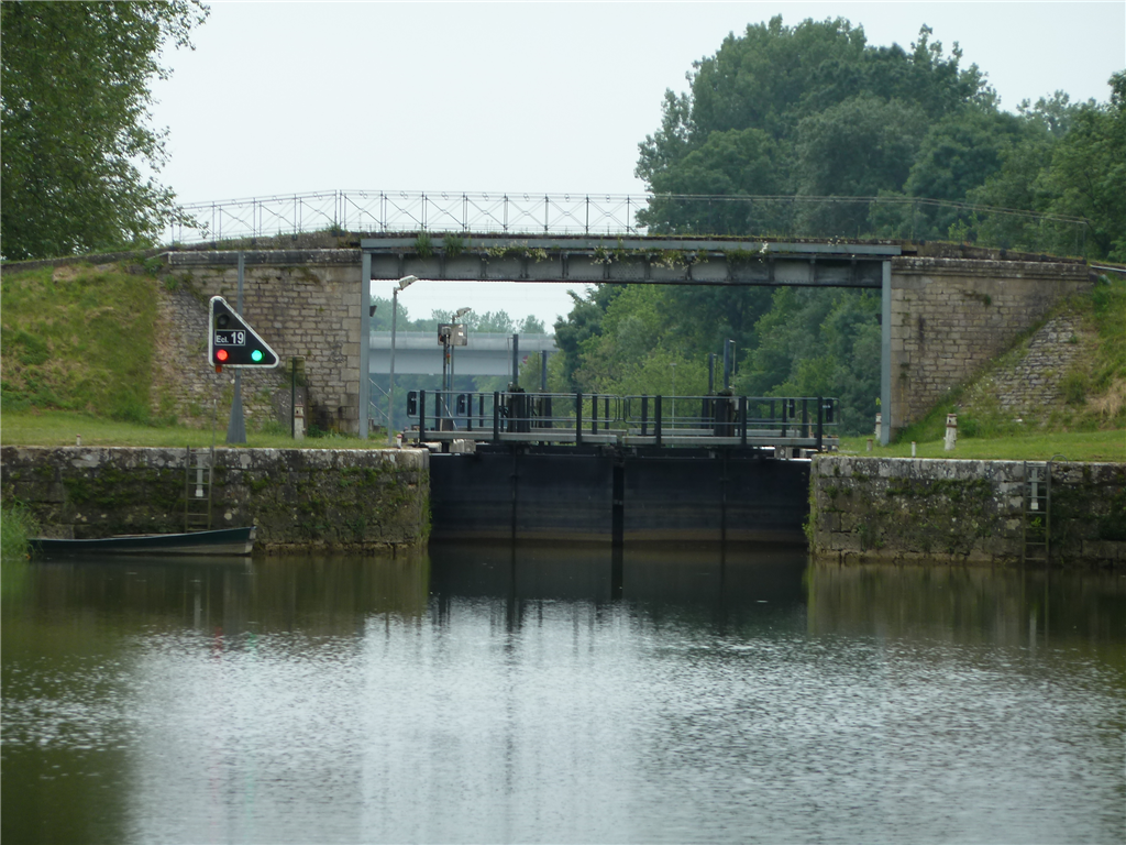 Das Wetter war angenehm, weil die Sonne von Schleiern verdeckt wurde. Unser Ziel wäre der Steg Municipal von Auxonne gewesen, aber dieser war leider voll belegt. Wir mussten also nochmals in den Port Royal.