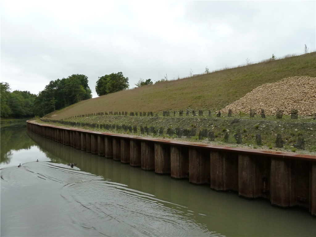 Der frisch reparierte Hangrutsch in der Einbahnstrecke