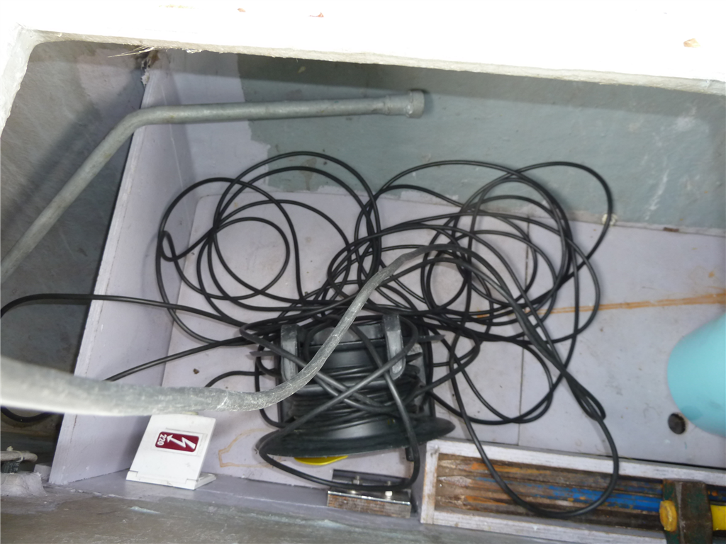 Das Landstromkabel, nicht ganz sauber aufgerollt