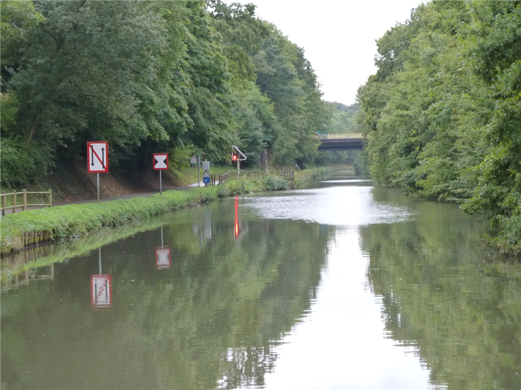 Wir absolvierten 10 Schleusen zu Berg - das gab warm bei dem Hudelwetter - und nochmal fünf zu Tal. Für die meisten Mietboote war das wohl zuviel, jedenfalls begegneten wir nur einem einzigen Boot, einem Kormoran mit Schweizer Besatzung.