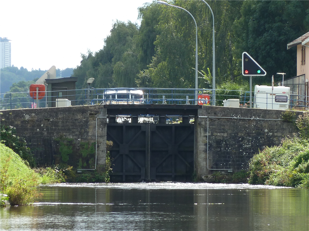 Danach legten wir ab und tuckerten heiter bergauf. Nur einmal war eine Schleusen en panne, weil etwas im Tor eingeklemmt war. Monsieur VNF, den wir über das Interphone bei der Schleuse benachrichtigt hatten, war nach einigen Minuten vor Ort, und schon ging es weiter.