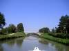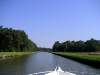Er tuckert mit rund 2km/h vor sich hin. Zumindest passt ... ... neben dem grösseren Schiff ... ... auch unser Mietboot rein. Etwas grösser als unser Boot, ...