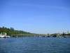 Eisenbahnbrücke beim PK49, St. Mammès. Die SEINE! Wobei wir zunächst nur Schiffe und Schubverbände vorbeifahren sehen.
