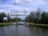 Die Schleuse nach dem Pont Canal. Sowohl das Schild wie auch die ganze Schleuse wird regelmässig frisch gestrichen.