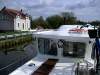 Der Baron de l'ecluse beim Anlegen in Genelard, nachdem die Dame sich auf schweizerdeutsch beklagt hatte, dass wir ihnen zuwenig Platz freilassen... Ein Adonis - sein Bugstrahlruder tönt wie ein Betonmischer.